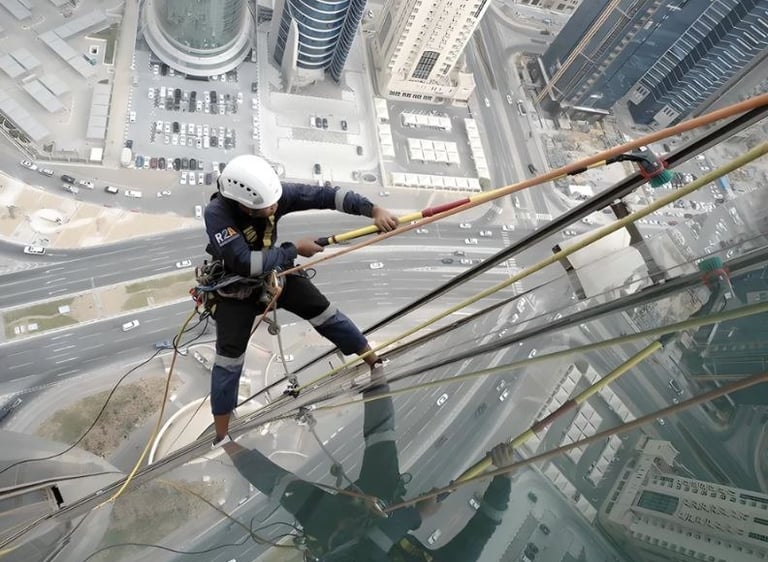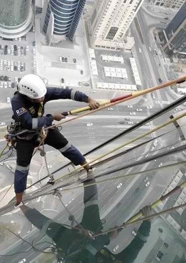 Safe and efficient cleaning services for high-rise buildings and hard-to-reach areas, using rope access methodology.