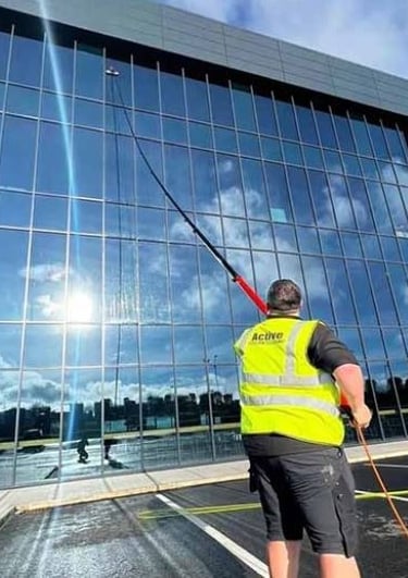 Efficient, safe, and eco-friendly exterior cleaning using advanced Waterfed Pole technology for spotless windows and surfaces.