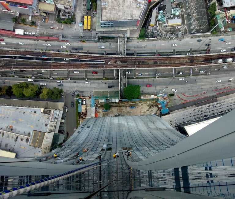 On the other hand, Commercial and high-rise building maintenance can also be challenging especially when dealing with complex architectural design. The continuous emerging capability of engineers and architects to establish modern and intricate building design which makes them difficult to access for maintenance through traditional building maintenance units (gondola, MEWPS, etc.). There goes the advantage of revolutionizing the maintenance methodology using our system. With the use of Access System for Building Maintenance (ASBM), all areas will be accessible for all kinds of maintenance in a more efficient and safe way.