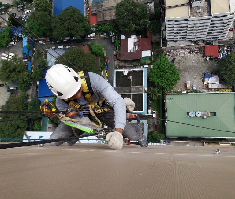 Maintaining industrial plants and high-rise buildings can be challenging and costly. Most of the areas are not accessible for traditional maintenance units such as gondola and MEWPS, some uses scaffolds which takes a lot of time before workers can proceed with their maintenance. Gladly, with the modern use of rope access methodology, maintenance works become more efficient and cost-effective, shortening the project time by tenfold comparing to old- traditional work methodology. Here at Eco Access Systems & Solutions, Inc., we are experts and experienced in providing professional rope access services for various technical work scopes in the industry. Our skilled technicians are continuously trained assuring each maintenance project's quality and safety.